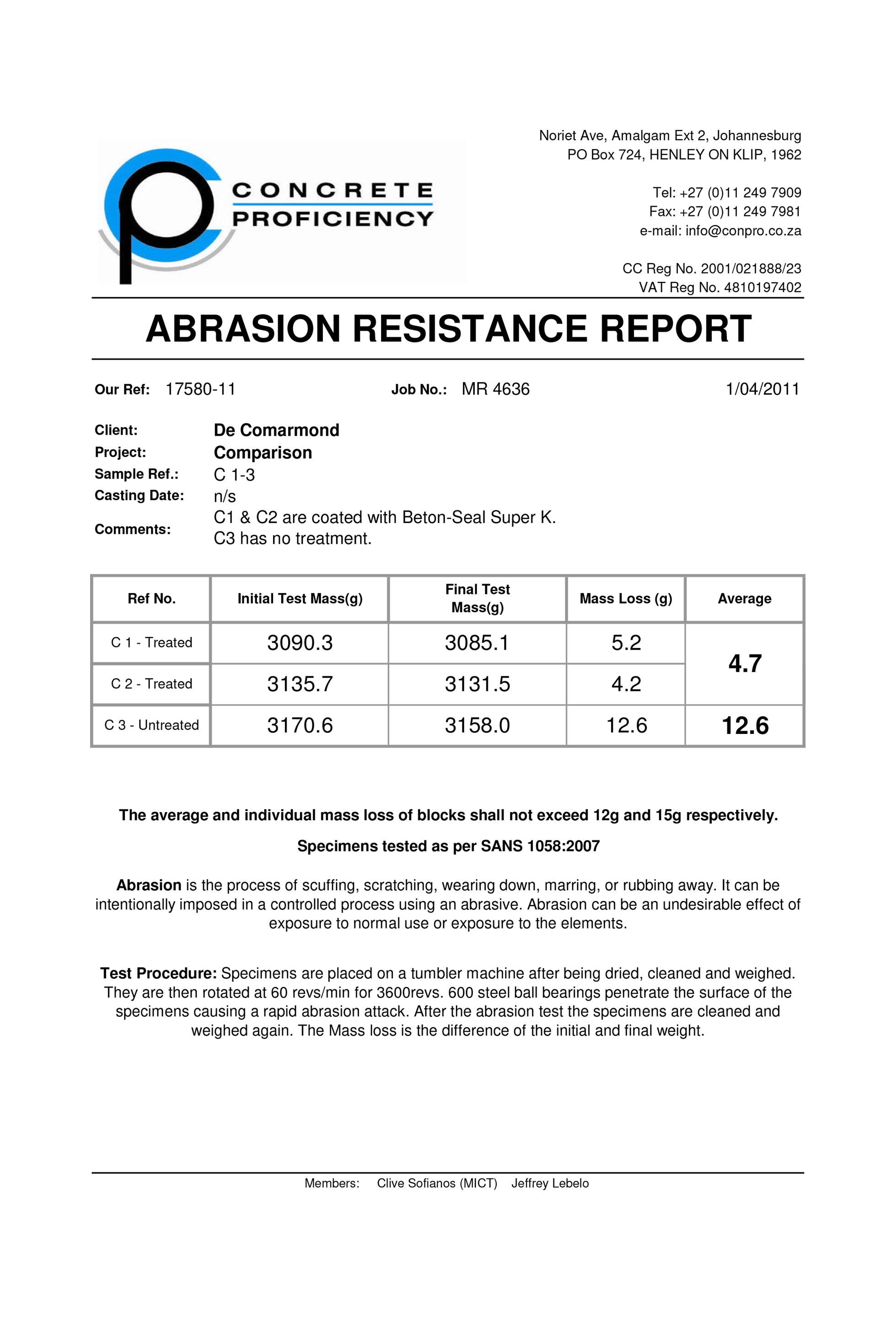 See the proof! Our 3rd party independent testing confirms that Béton Seal dramatically reduces surface wear and increases concrete durability.